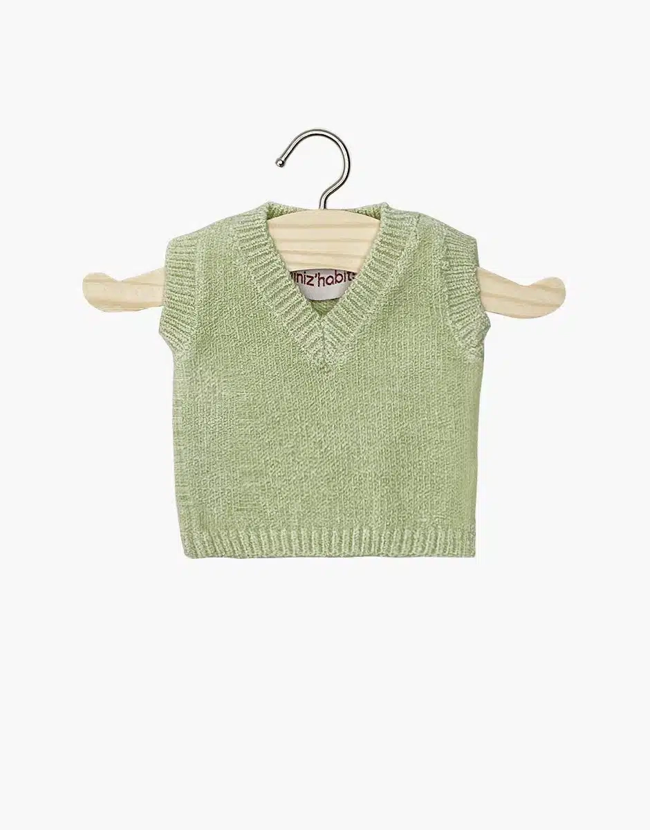 Débardeur Léonardo en tricot vert sauge pour poupée 34 cm Minikane