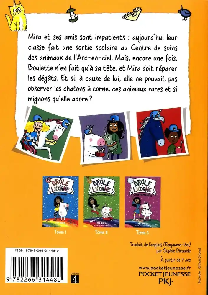 Exit les licornes gracieuses, douces, délicates ! Boulette la licorne est magique, mais grincheux, gourmand, paresseux, en un mot hilarant ! Mira et ses amis Rémi et Zoé sont terriblement excités : leur classe part en sortie scolaire... au Centre de Soins pour Animaux Arc-en-Ciel ! Mais comme d'habitude, Boulette n'en fait qu'à sa tête, et la pauvre Mira doit une nouvelle fois réparer les dégâts...