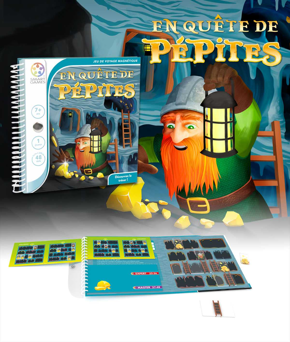 «En quête de pépite» est un jeu de voyage magnétique proposant 48 défis, de facile à expert.