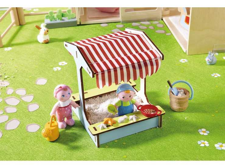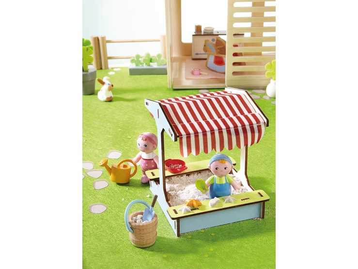 Contenu: 1 bac à sable, 1 seau, 1 arrosoir, 1 pelle à sable, 1 passoire, 2 moules à sable
