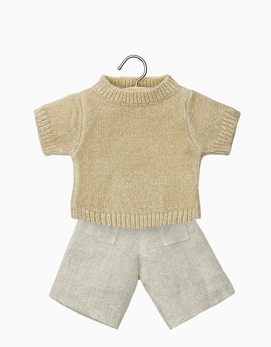 Habillez votre poupée de 34 cm avec l'élégant Ensemble Paula de Minikane, comprenant un pull en tricot crème à manches courtes, fabriqué en France.