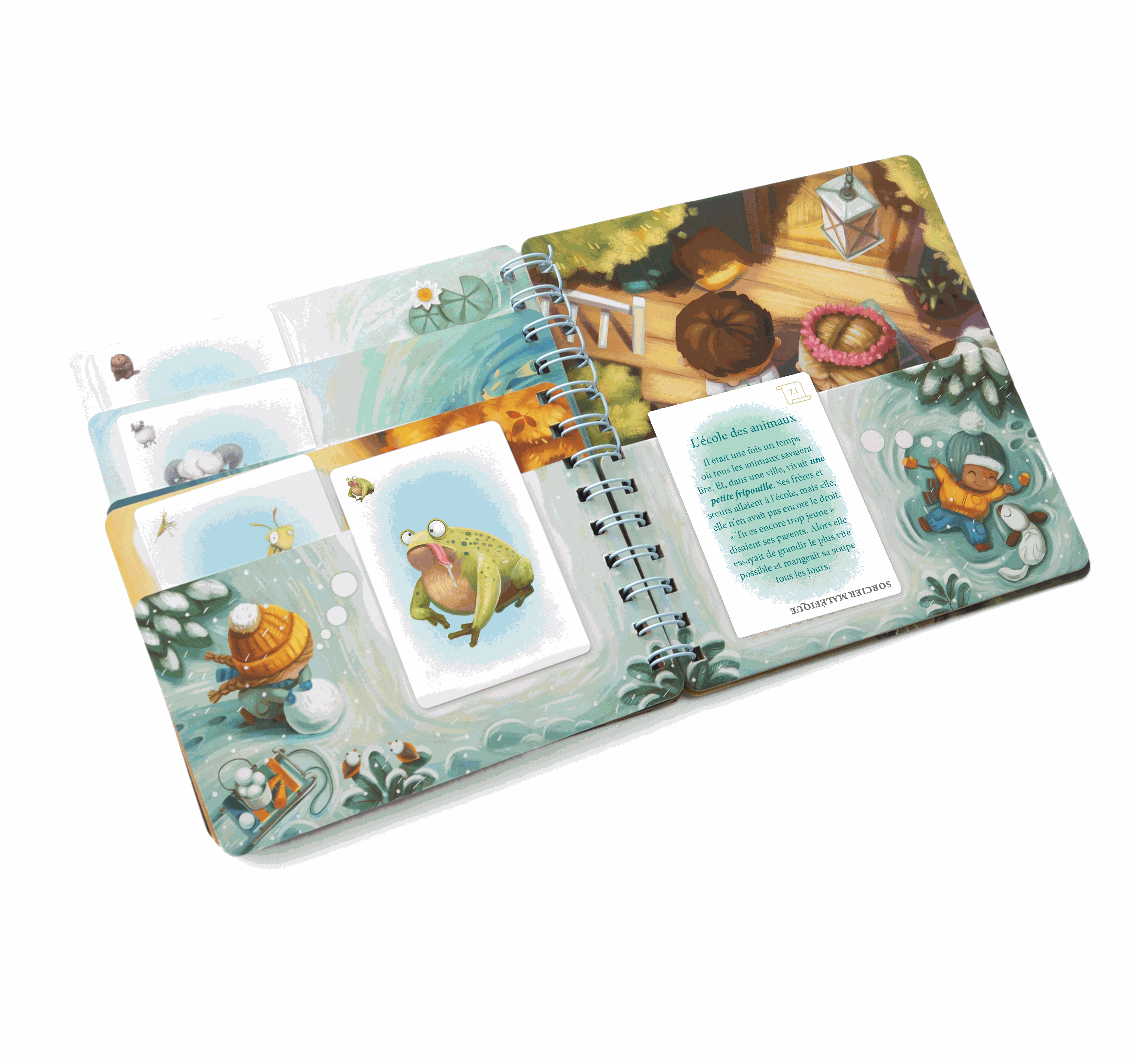 Fabulia est un jeu de société coopératif pour enfants dès 5 ans, où les joueurs choisissent les héros d'histoires interactives, favorisant imagination et narration.