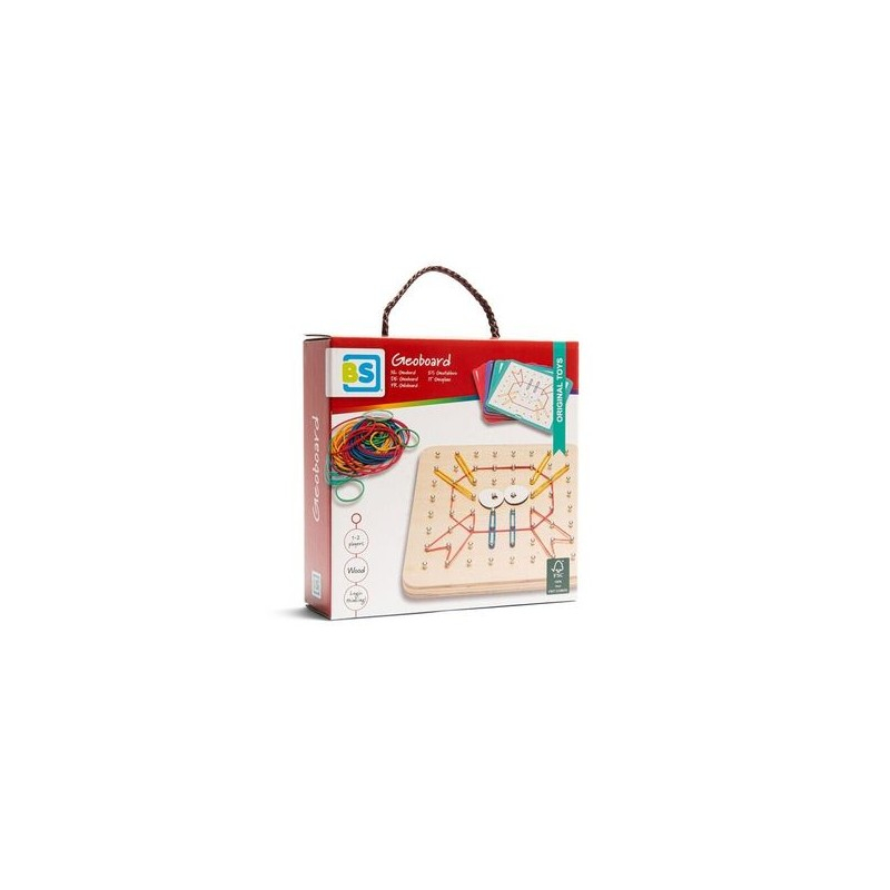 Stimulez la créativité de votre enfant avec le Géoboard BS, un jeu en bois comprenant un plateau de 18 x 18 cm, 40 cartes d'exemples et 48 élastiques colorés. Idéal pour développer la motricité fine dès 3 ans.