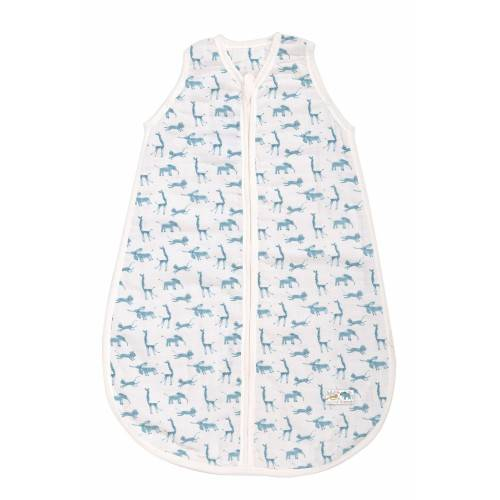 Gigoteuse d'été 70 cm 'Sous mon baobab' de Moulin Roty, en coton biologique certifié OEKO-TEX®, avec motif animal à l'aquarelle et fermeture zippée frontale.