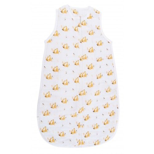 Gigoteuse légère 70 cm 'Le Voyage d'Olga' de Moulin Roty, en lange 100% coton, ornée de Chaussette le Renard. Idéale pour les nuits d'été, avec fermeture éclair centrale et boutons-pression aux emmanchures. Convient aux bébés de la naissance à 6 mois.