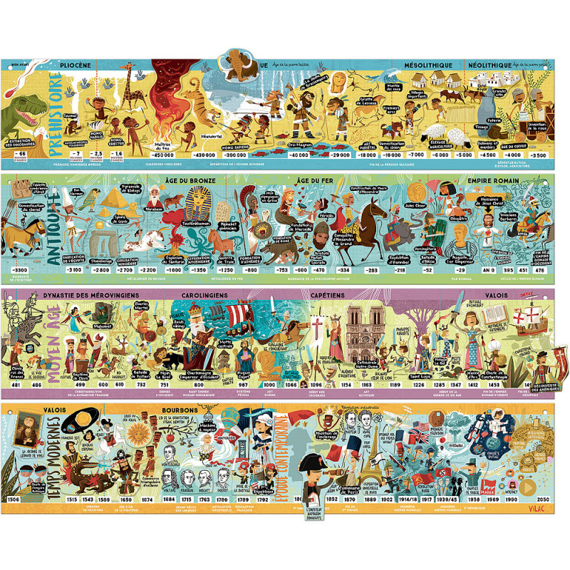 Explorez l'histoire de manière ludique avec la Grande Frise Historique Magnétique de Vilac, composée de quatre panneaux en bois et de 50 magnets représentant des événements et figures clés. Idéale pour les enfants dès 6 ans.