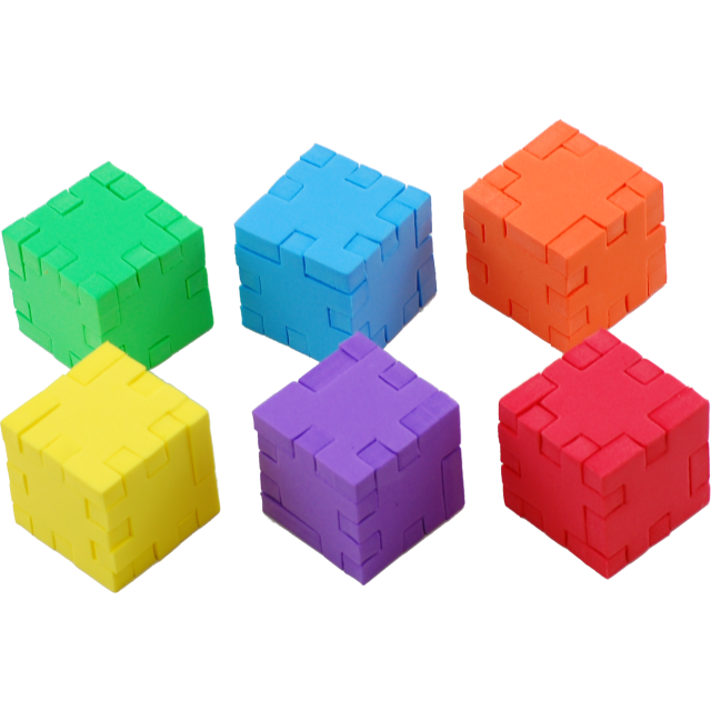 Le Happy Cube Junior comprend 1 puzzle de cube de mousse. Avec chaque casse-tête, la difficulté devient plus difficile. Le défi ultime est de combiner les énigmes dans les grandes constructions.