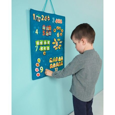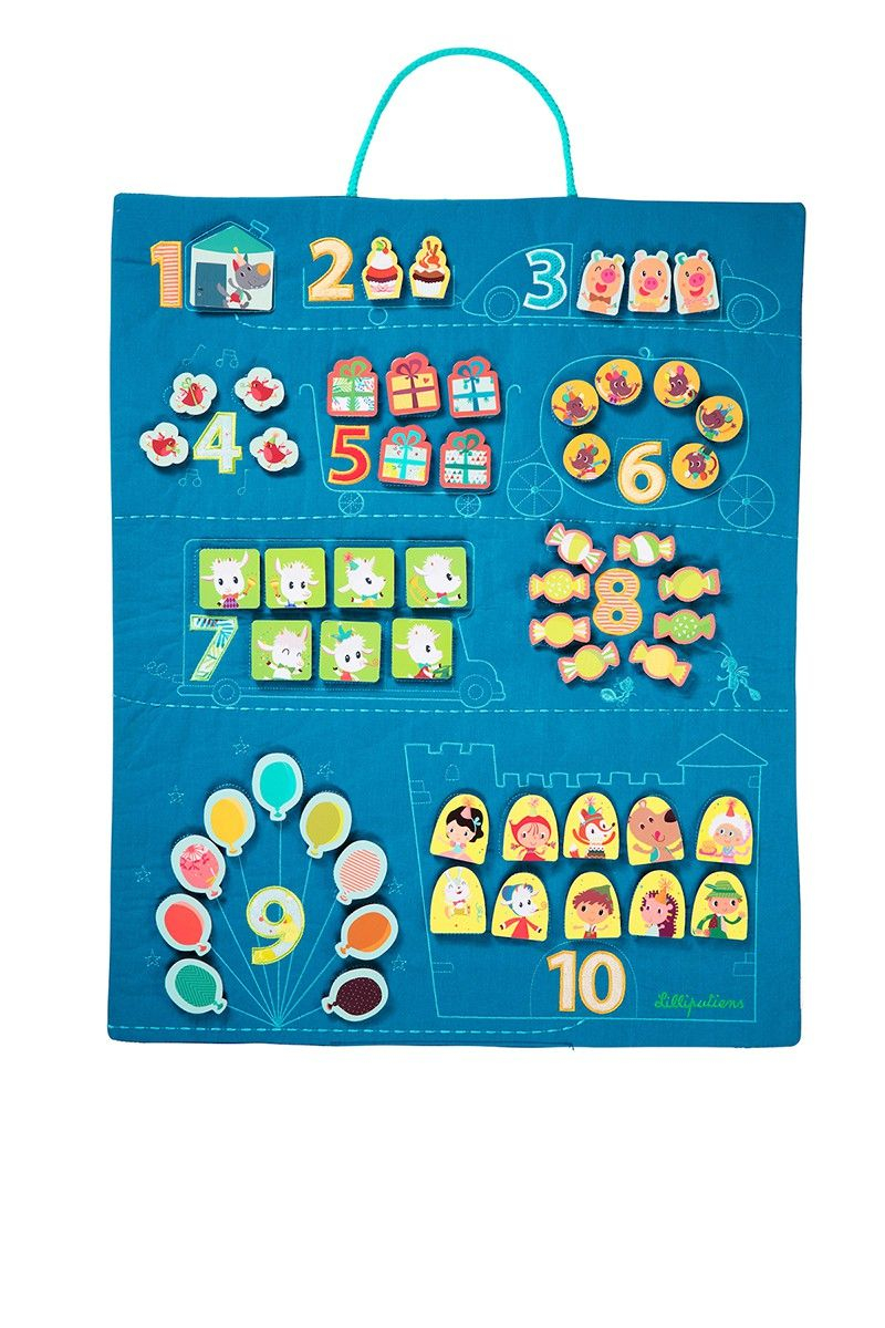 Le panneau éducatif "J'apprends à compter" de Lilliputiens initie les enfants dès 3 ans aux chiffres de 1 à 10 de manière ludique, avec 55 cartes illustrées à fixer sur un panneau coloré.