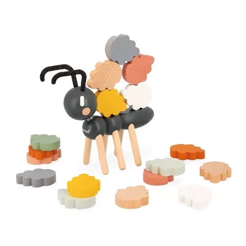 Venez aider l’amie fourmi ! Ce jeu d’équilibre en bois est destiné aux enfants à partir de 2 ans. L’objectif ? Faire tenir un maximum de feuilles sur le dos de la fourmi sans les faire tomber ! Ce jeu de société en bois promet concentration et minutie, mais surtout de bons fou-rires en famille. Notre fourmi a fière allure, elle est prête à emporter le plus de feuilles possibles à la fourmilière mais n’est pas contre un coup de main ! Ce jeu d’adresse se compose d’une grande fourmi en bois et feutrine, et de 20 feuilles colorées en bois. Les règles de ce jeu de société sont simples et donc adaptées aux jeunes enfants. Ils peuvent d’ailleurs jouer seul et essayer de battre leur record personnel. Sinon, toute la famille peut aussi se réunir pour jouer ensemble : celui qui fait tomber la pile a perdu ! Idéal pour aider même les plus petits à faire preuve d’adresse et de dextérité, ce jeu d’équilibre propose des pièces dont la taille est adaptée aux petites mains. Original et durable, ce jouet d’éveil est composé de bois certifié FSC™ et fait partie de notre collection Sweet Cocoon.