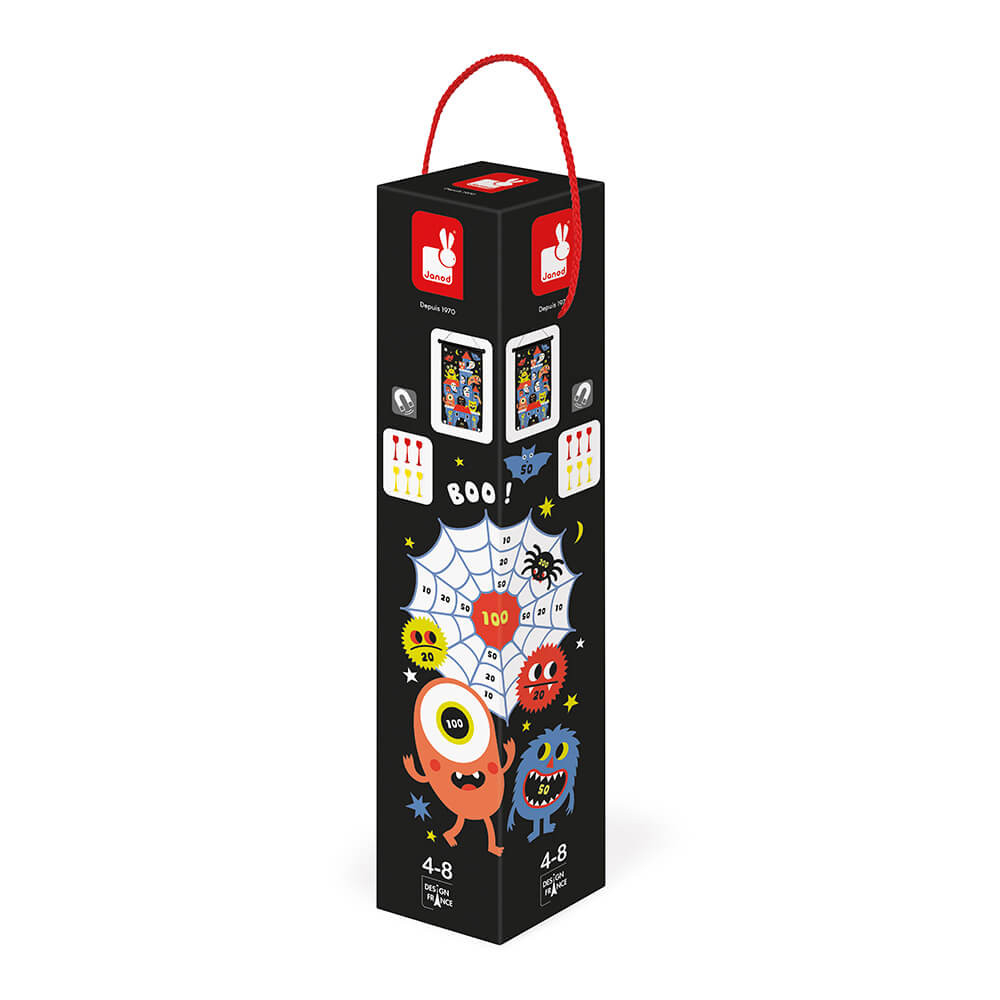 Le Jeu de fléchettes magnétiques Monstres de Janod est un jeu d'adresse sécurisé pour les enfants de 4 à 8 ans, comprenant une cible réversible avec des illustrations de monstres et 6 fléchettes aimantées. Idéal pour développer la dextérité et la concentration tout en s'amusant.
