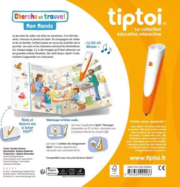 Découvrez le livre interactif tiptoi® 'Cherche et Trouve Mon Monde' de Ravensburger, un jeu éducatif électronique sans écran pour les enfants dès 2 ans. Accompagnez Julien dans ses aventures quotidiennes et stimulez la curiosité de votre enfant.