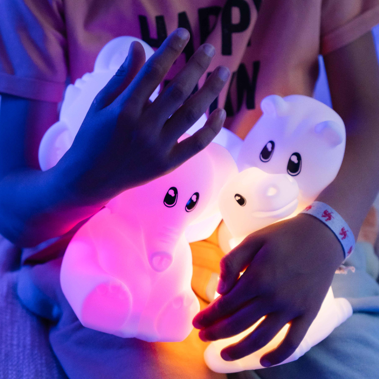 La veilleuse Kidynight éléphant de Kidywolf est une lampe douce et sécurisée en silicone souple, offrant une lumière blanche ou colorée avec fonction tactile, une minuterie de 30 minutes et une batterie rechargeable de 1200mAh pour jusqu'à 12 heures d'autonomie.