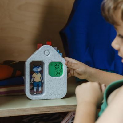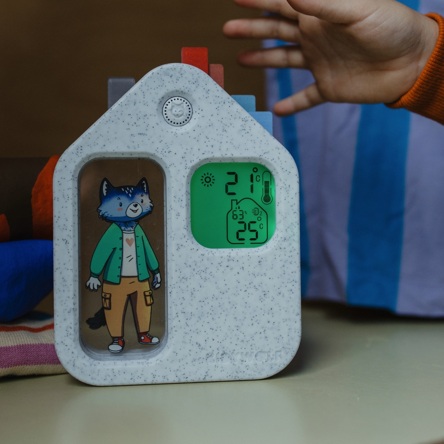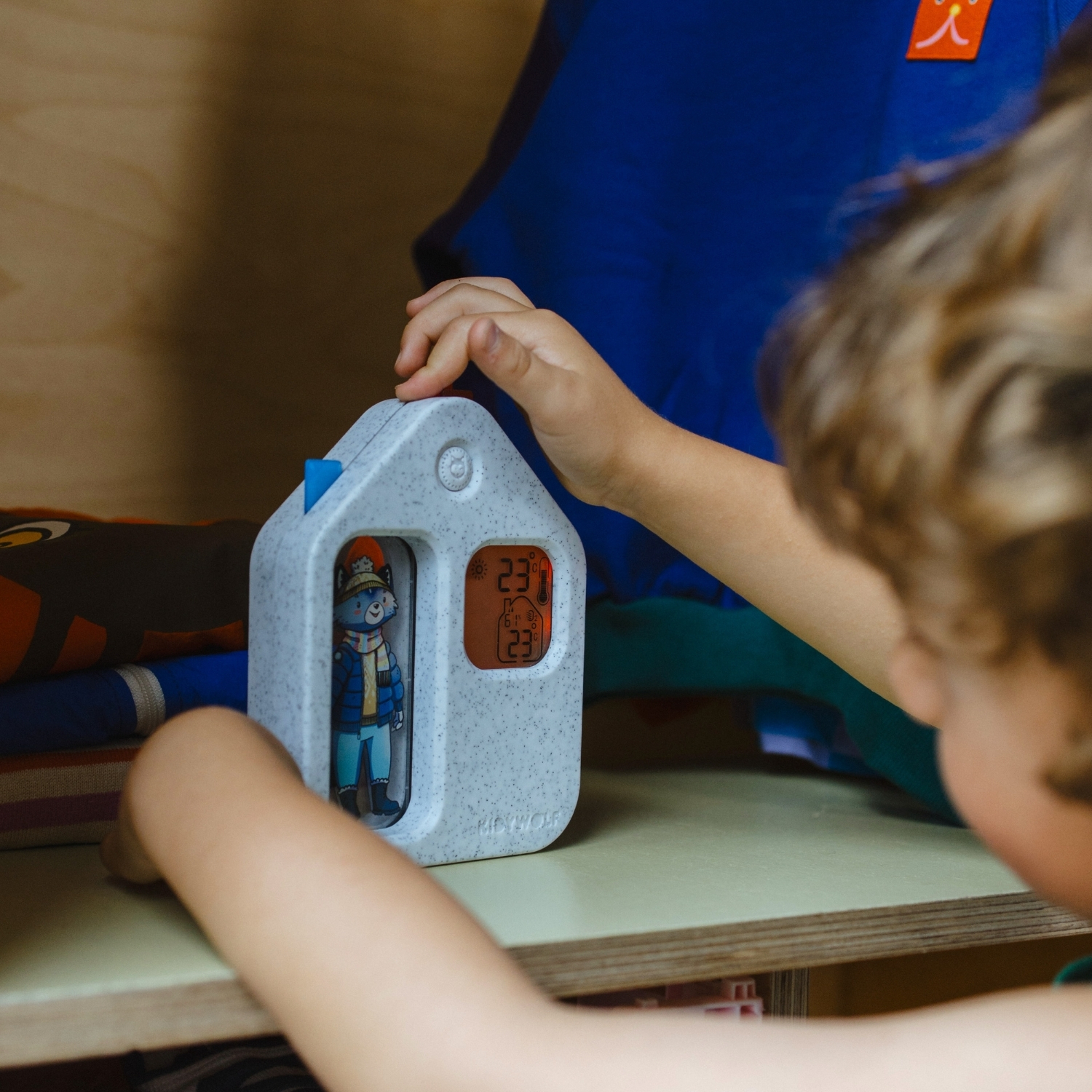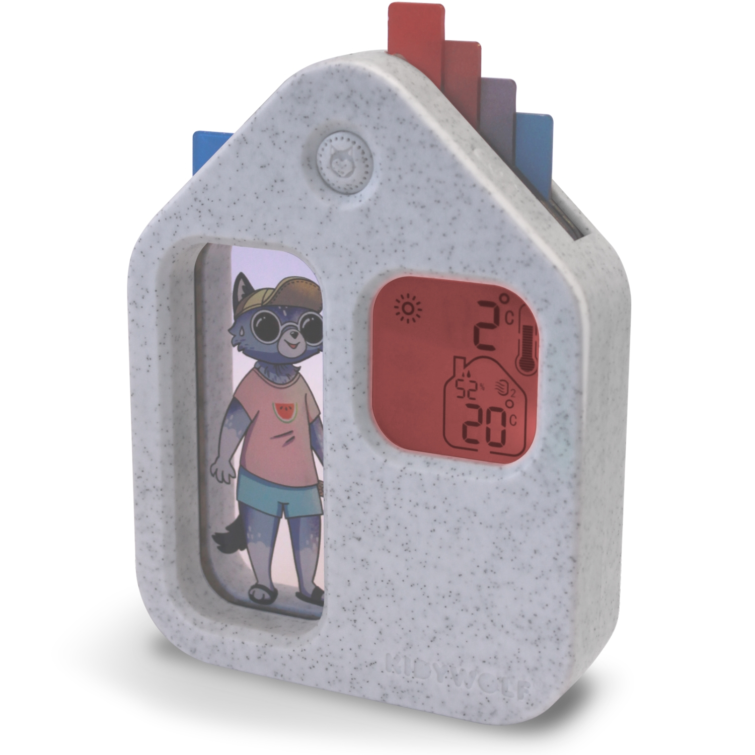 La station météo éducative KIDYWEATHER de Kidywolf aide les enfants à comprendre la météo et à choisir leur tenue quotidienne de manière autonome, grâce à des mesures intérieures et extérieures précises et des plaquettes de tenues interactives.
