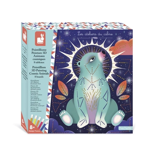 Offrez à votre enfant une expérience artistique unique avec le Kit Créatif Pointillisme Peinture 3D Animaux Cosmiques de Janod. Conçu pour les enfants à partir de 8 ans, ce coffret permet de réaliser 8 magnifiques tableaux en utilisant la technique du pointillisme, où la peinture est appliquée sous forme de points pour créer un effet 3D en relief.