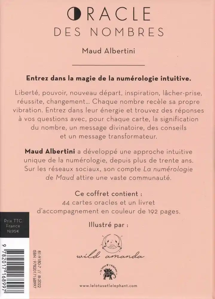 Vous trouverez dans cet Oracle : · 44 cartes oracle magnifiquement illustrées par l'artiste Amanda Wild avec fer à dorer sur tranche. · Un livret explicatif en couleur de 192 pages avec pour chaque carte, le message du nombre, la signification des cartes droites ou inversées et le mantra associé. · La vibration des nombres 1 à 44 et leur sens divinatoire, dans des textes courts, applicables à toutes les situations de votre quotidie