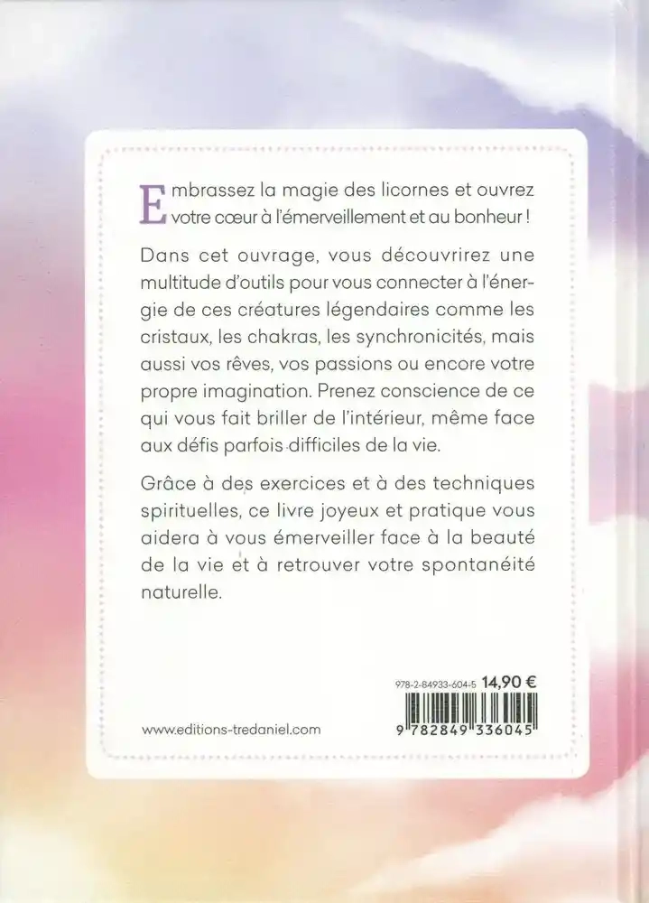 Embrassez la magie des licornes et ouvrez votre coeur à l'émerveillement et au bonheur ! Dans cet ouvrage, vous découvrirez une multitude d'outils pour vous connecter à l'énergie de ces créatures légendaires comme les cristaux, les chakras, les synchronicités, mais aussi vos rêves, vos passions ou encore votre propre imagination. Prenez conscience de ce qui vous fait briller de l'intérieur, même face aux défis parfois-difficiles de la vie.