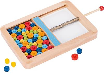 Le Mikado des Pions de Goki est un jeu d'adresse en bois où les enfants dès 4 ans doivent retirer des pions sans faire bouger le plateau à ressorts. Chaque couleur de pion correspond à un nombre de points, offrant une expérience ludique et éducative.