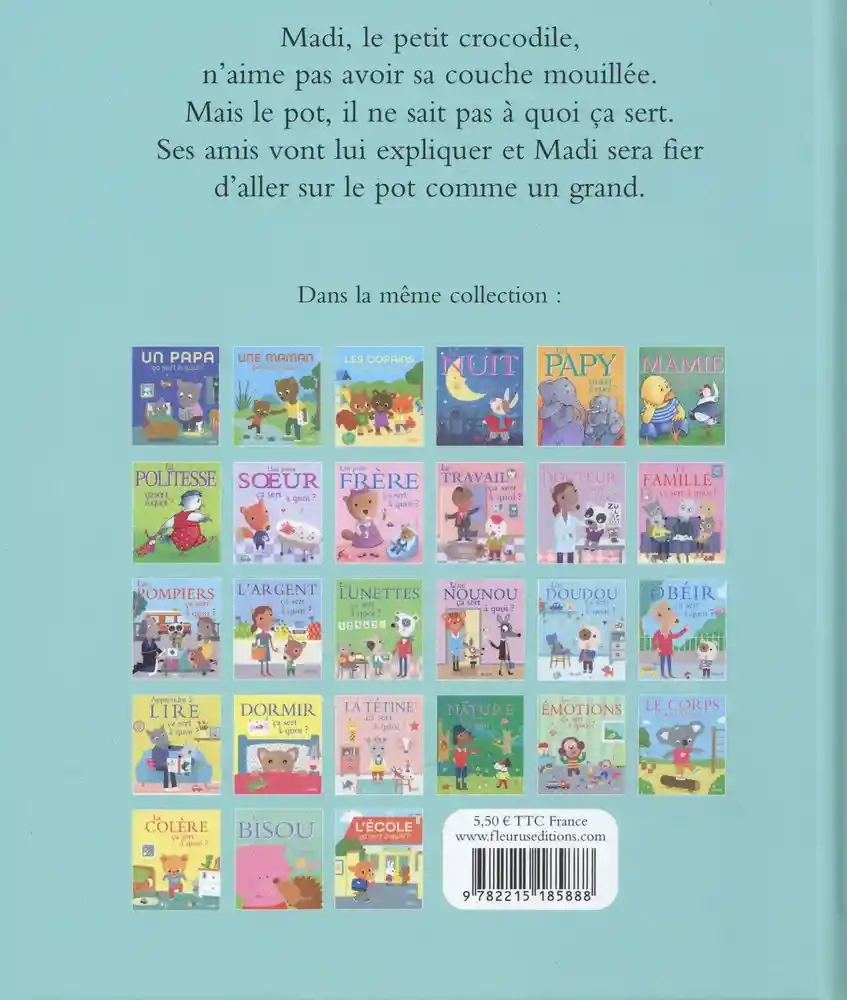 Madi, le petit crocodile, n'aime pas avoir sa couche mouillée. Mais le pot, il ne sait pas à quoi ça sert. Ses amis vont lui expliquer et Madi sera fier d'aller sur le pot comme un grand.