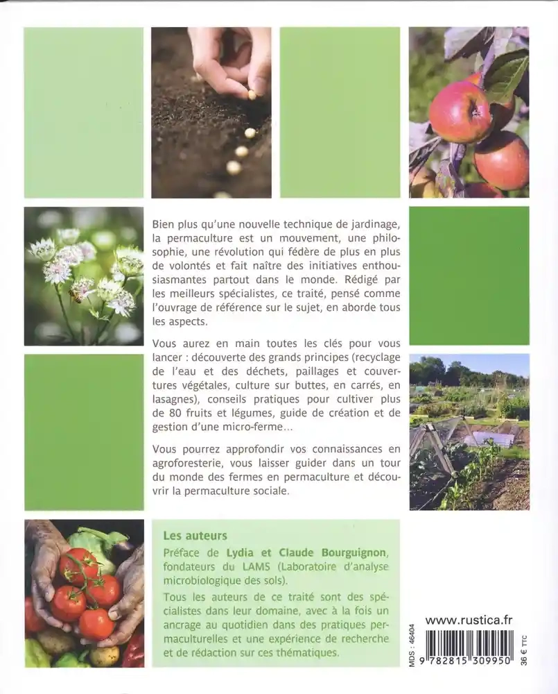 Bien plus qu'une nouvelle technique de jardinage, la permaculture est un mouvement, une philosophie, une révolution qui fédère de plus en plus de volontés et fait naître des initiatives enthousiasmantes partout dans le monde. Rédigé par les meilleurs spécialistes, ce traité, pensé comme l'ouvrage de référence sur le sujet, en aborde tous les aspects. Vous aurez en main toutes les clés pour vous lancer : découverte des grands principes (recyclage de l'eau et des déchets, paillages et couvertures végétales, culture sur buttes, en carrés, en lasagnes), conseils pratiques pour cultiver plus de 80 fruits et légumes, guide de création et de gestion d'une micro-ferme...