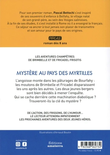 Découvrez « Les aventures champêtres de Brimbelle et de Fricadel Frisotis : Mystère au pays des myrtilles » de Pascal Bettochi, un roman jeunesse captivant où deux jeunes enquêteurs affrontent la mystérieuse disparition de leurs moutons dans le village de Bourfahy.