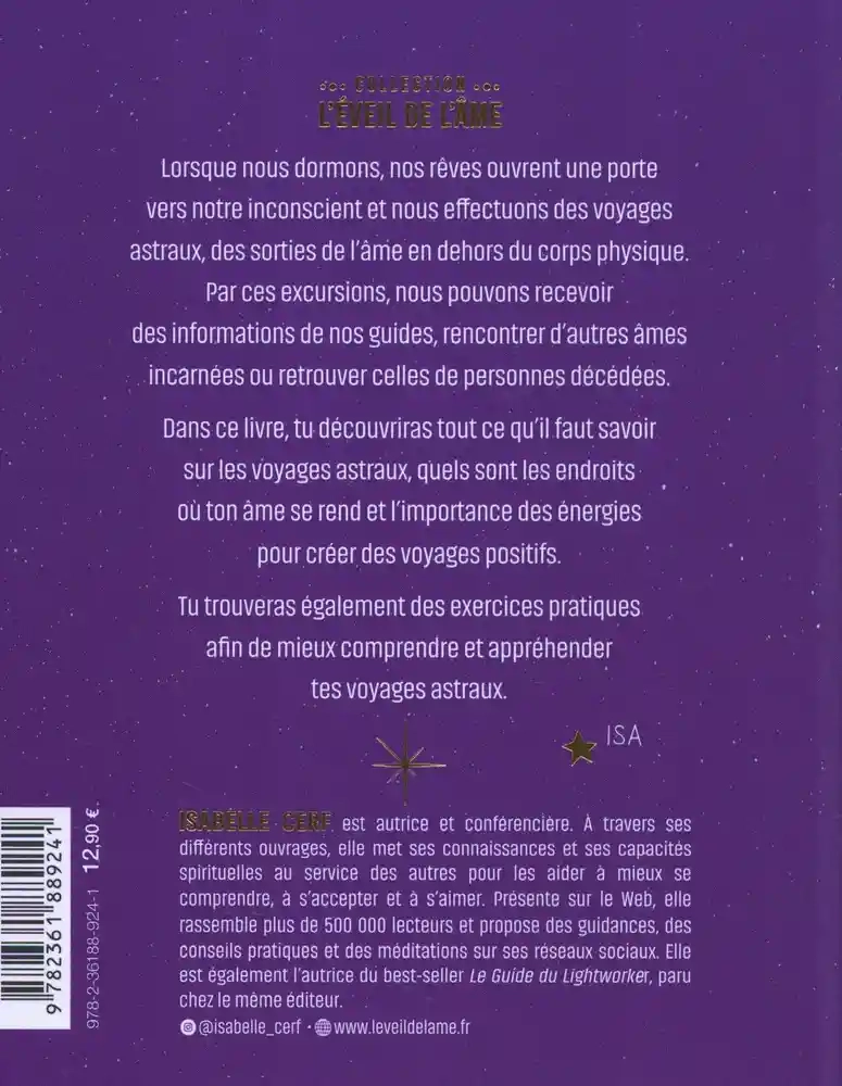Lorsque nous dormons, nos rêves ouvrent une porte vers notre inconscient et nous effectuons des voyages astraux, des sorties de l'âme en dehors du corps physique. Par ces excursions, nous pouvons recevoir des informations de nos guides, rencontrer d'autres âmes incarnées ou retrouver celles de personnes décédées. Dans ce livre, tu découvriras tout ce qu'il faut savoir sur les voyages astraux, quels sont les endroits où ton âme se rend et l'importance des énergies pour créer des voyages positifs. Tu trouveras également des exercices pratiques afin de mieux comprendre et appréhender tes voyages astraux.