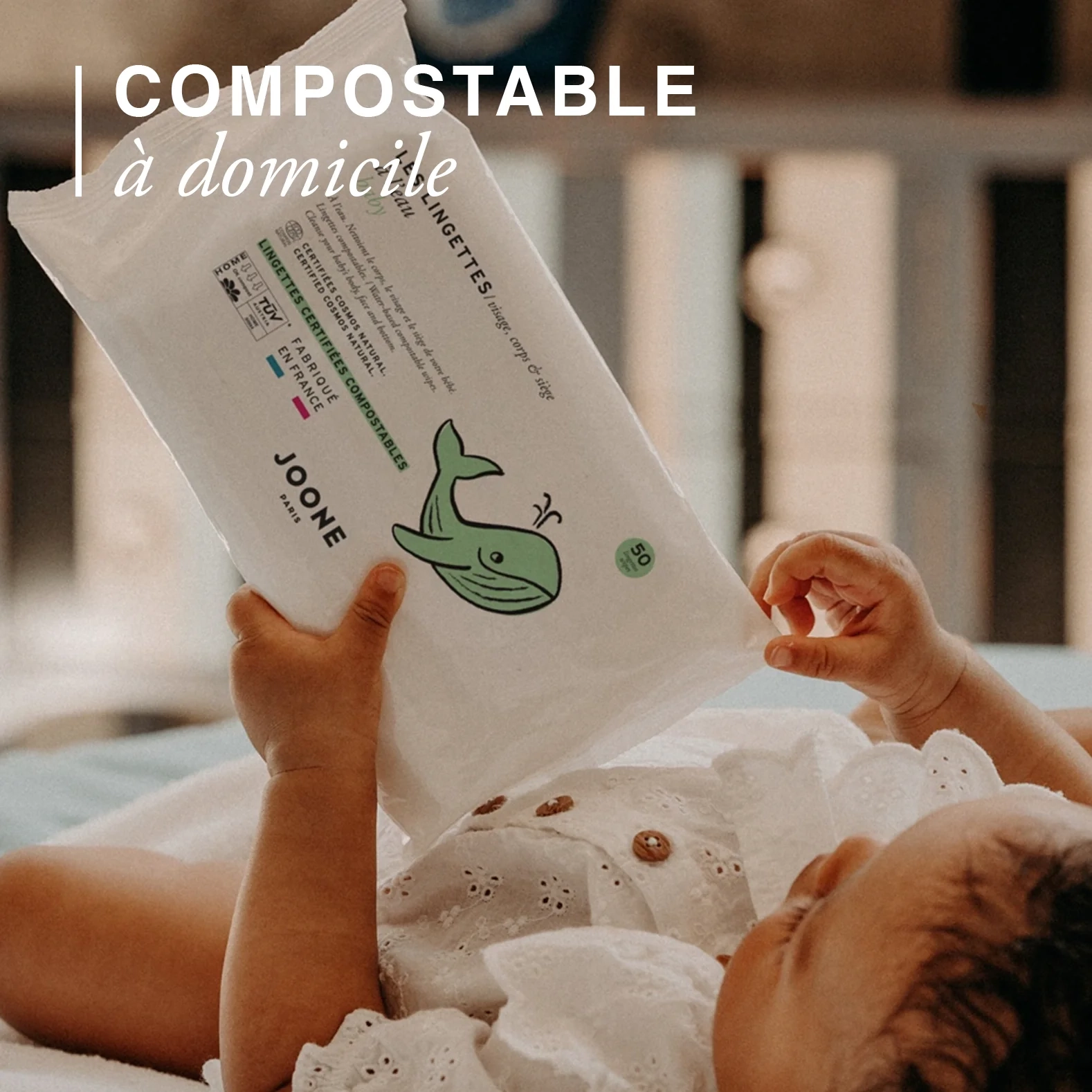 Offrez à votre bébé la douceur française avec nos lingettes compostables, une option sûre et naturelle pour son bien-être au quotidien !