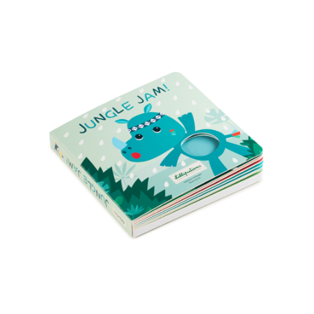 Découvrez le Livre tactile et sonore "Jungle Jam" de Lilliputiens, un ouvrage interactif pour enfants dès 12 mois, combinant illustrations colorées, textures variées et sons d'animaux de la jungle pour stimuler les sens et l'imagination.