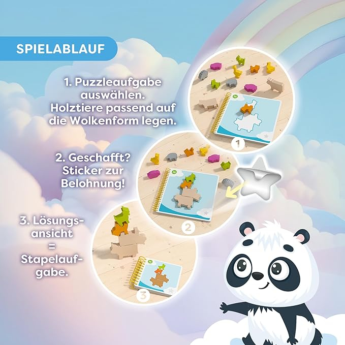Découvrez 'Logic! Games – Bao's Cloudland' de HABA, un jeu éducatif 2-en-1 pour enfants dès 3 ans, combinant puzzles et défis d'empilement pour stimuler la logique et la motricité fine.