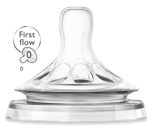 Le Lot de Tétines Natural - 1 Trou à Débit lent - First Flow 0 mois + - Avent offre une tétée naturelle grâce à sa large tétine imitant la forme du sein. Sa texture ultra-douce en silicone sans BPA et son système anti-coliques perfectionné assurent le confort de votre bébé dès la naissance.