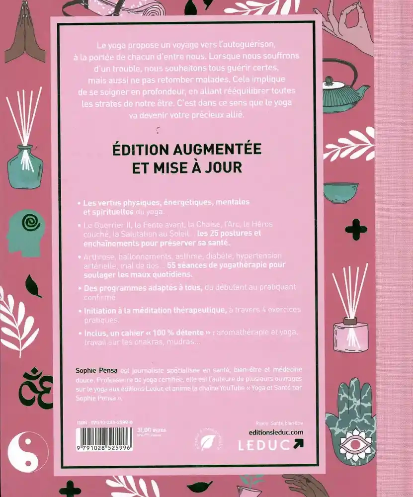 Le yoga propose un voyage vers l'autoguérison, à la portée de chacun d'entre nous. Lorsque nous souffrons d'un trouble, nous souhaitons tous guérir certes, mais aussi ne pas retomber malades. Cela implique de se soigner en profondeur, en allant rééquilibrer toutes les strates de notre être. C'est dans ce sens que le yoga va devenir votre précieux allié. EDITION AUGMENTEE ET MISE A JOUR Les vertus physiques, énergétiques, mentales et spirituelles du yoga.