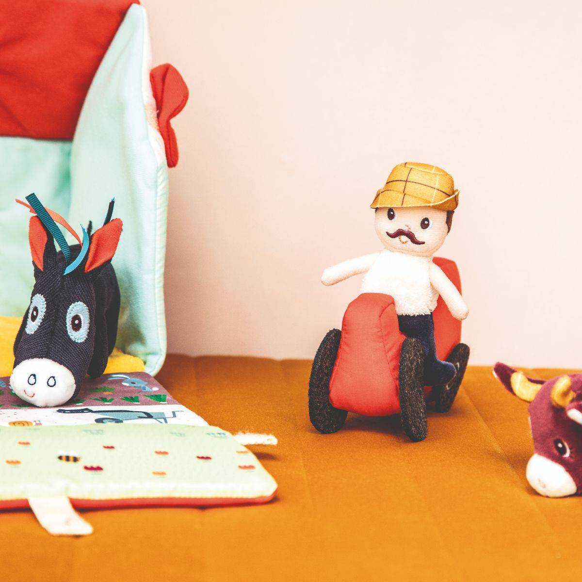 Découvrez Ma Première Ferme de Lilliputiens, un jouet d'éveil en tissu pour enfants dès 18 mois, comprenant une ferme transportable, six animaux attachants et un fermier avec son tracteur. Idéal pour stimuler l'imagination et la motricité fine.
