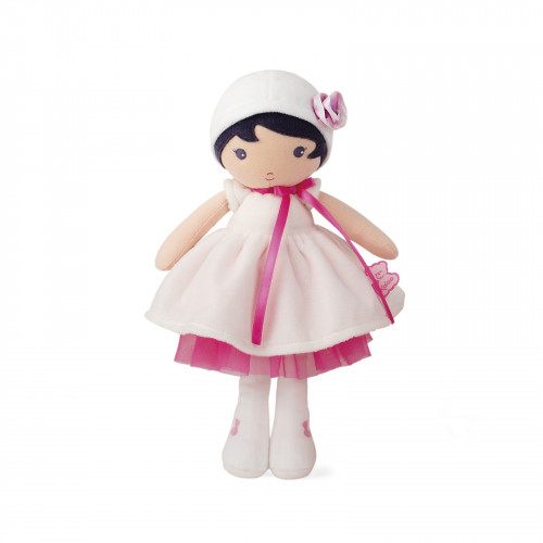 Perle K est toute de tendresse et délicatesse. La plus sage de la famille, elle est telle une princesse avec son jupon en tulle et sa jolie fleur à la tête. Souriante et bienveillante, elle sera toujours aux côtés de bébé pour la réconforter et la consoler lors de chagrins. L’emblématique ours Kaloo brodé aux pieds la rend d’autant plus précieuse. Un long ruban dans le dos permet d’y écrire le nom de bébé pour l’identifier facilement. Sa grande taille garantissent de vrais câlins tout doux. Poupée de 32 cm, présentée dans un joli écrin.
