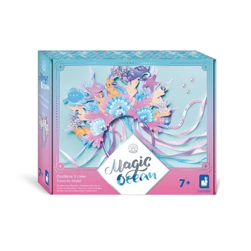Prêts pour le couronnement du souverain(e) du royaume sous-marin ? Avec ce kit créatif pour les enfants à partir de 7 ans, l'immersion dans l'univers des sirènes est imminente ! Pour compléter un déguisement ou s'imaginer en sirène fabuleuse, ce coffret créatif permet de réaliser un diadème magistral. Voilà une activité manuelle qui permet aux enfants de développer leur dextérité et leur sens artistique, tout en stimulant leur imagination ! L'une des particularités de cette parure de cheveux de sirène, ce sont les rubans de satin de différentes couleurs ainsi que le ruban de sequins nacrés : ils donnent l'illusion d'une chevelure flamboyante et virevoltent à l'infini. Et comme toute princesse sirène a la responsabilité de veiller à l'équilibre du monde sous-marin, la coiffe est composée de coquillages, de coraux et de créatures marines étincelantes. Ce kit de loisir créatif contient : 1 serre-tête en satin violet, 5 planches imprimées et prédécoupées, 3 rubans de satin (violet, rose, bleu), 1 ruban de sequins nacrés, 1 planche prédécoupée holographique, 1 planche prédécoupée pailletée violette, 4 demi-perles nacrées autocollantes et 1 tube de colle. Un livret avec instructions et modèles est également inclus, pour une activité créative dans le calme et en toute autonomie. Il faudra compter environ 1h30 pour réaliser ce diadème sirène. Plongez dans l'univers de la collection "Magic Ocean", des kits de loisirs créatifs pour enfant sur le thème des profondeurs marines, pour des après-midis créatifs bercés par le son des vagues !