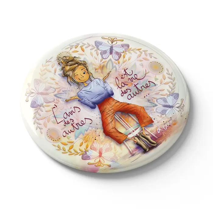 Ajoutez une touche poétique à votre intérieur avec le magnet "L'avis des autres est la vie des autres" de Mon Amie Luce. D'un diamètre de 7,5 cm, ce magnet artisanal présente une finition soft touch et un vernis repéré, offrant un effet raffiné et un toucher velouté. Parfait pour décorer votre réfrigérateur, lampe ou tableau aimanté.