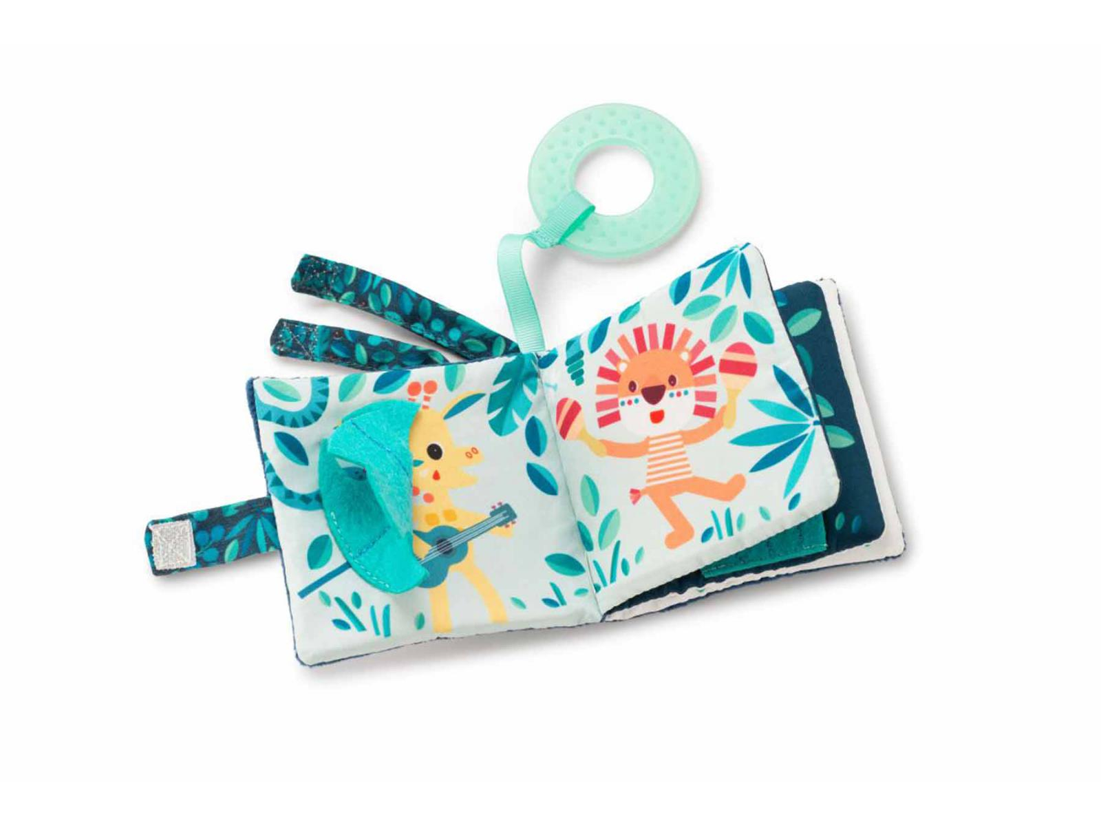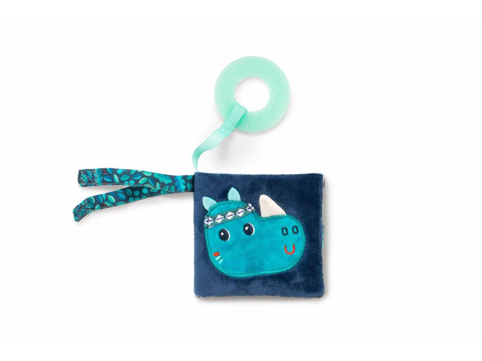 Découvrez l'imagier en tissu Marius le rhinocéros de Lilliputiens, un livre interactif pour bébés dès 6 mois, avec anneau de dentition et surprises sensorielles.