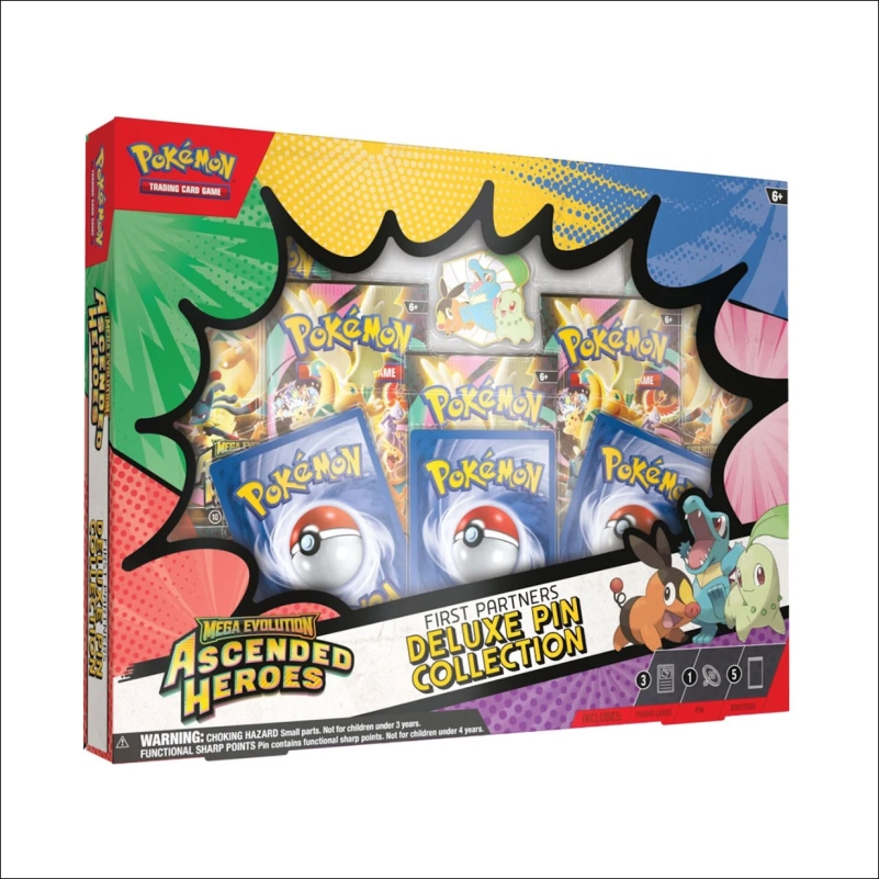 Le Coffret Deluxe Pin Box ME 2.5 - Héros Transcendants est un ensemble exclusif pour les fans de Pokémon, comprenant :