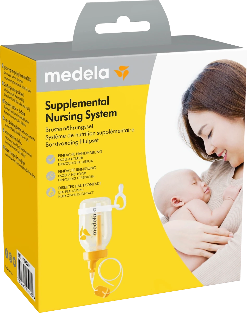 Ce système de nutrition supplémentaire Medela est conçu pour un allaitement complémentaire au sein. Il permet d’entretenir la lactation et l’intimité mère-enfant.
