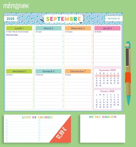 Memoniak Mémopad calendrier hebdomadaire bloc aimanté pour s'amuser en famille. De septembre 2025 à août 2026 Edition 2025 - 2026