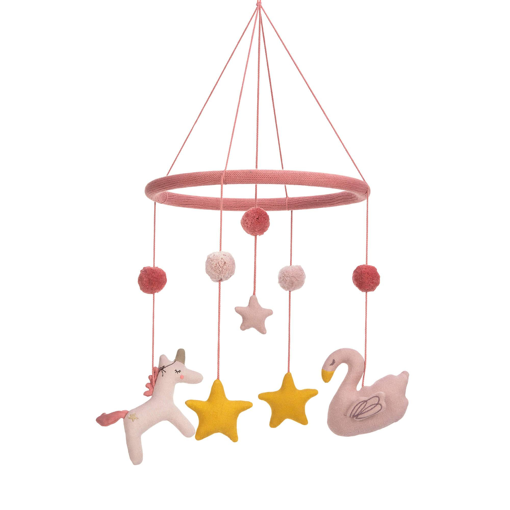 Le Mobile Cheval et Cygne de LÄSSIG, en coton biologique, présente des motifs de licorne, cygne et étoiles dans des teintes douces. Il stimule le développement sensoriel de bébé tout en décorant sa chambre avec élégance.