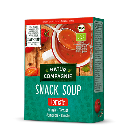 Savourez une délicieuse soupe instantanée à la tomate, biologique et sans additifs indésirables, idéale pour une pause rapide et saine.