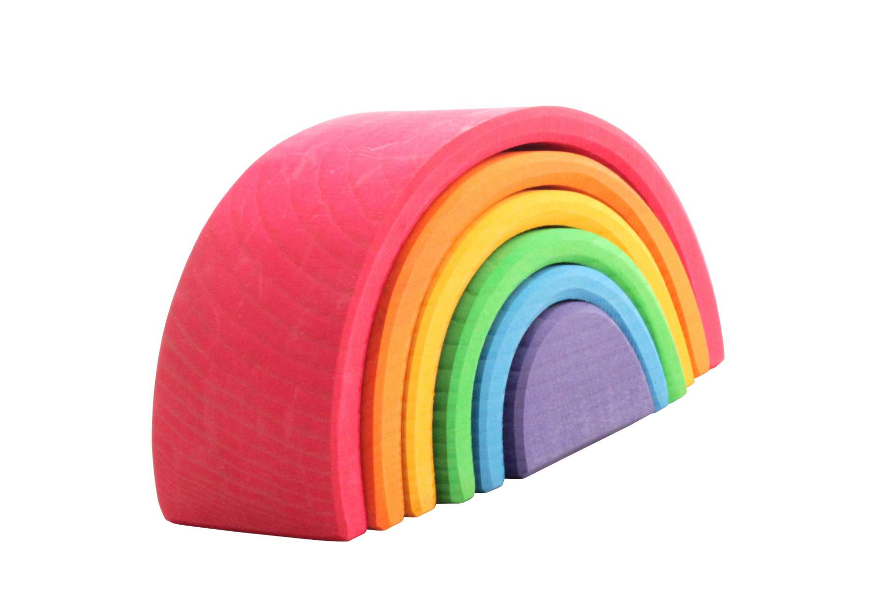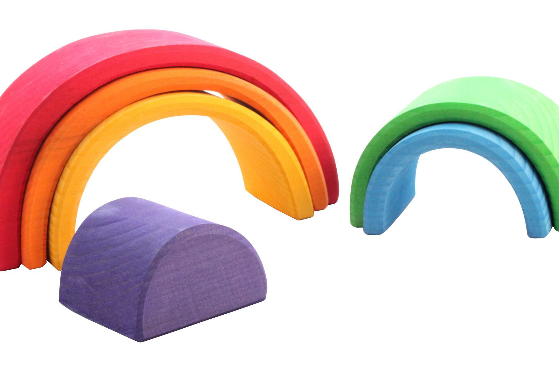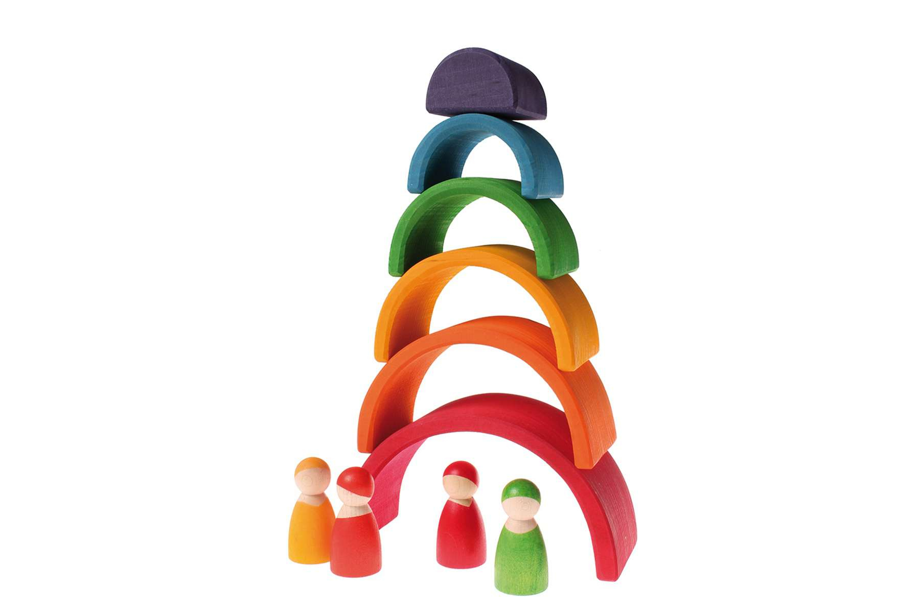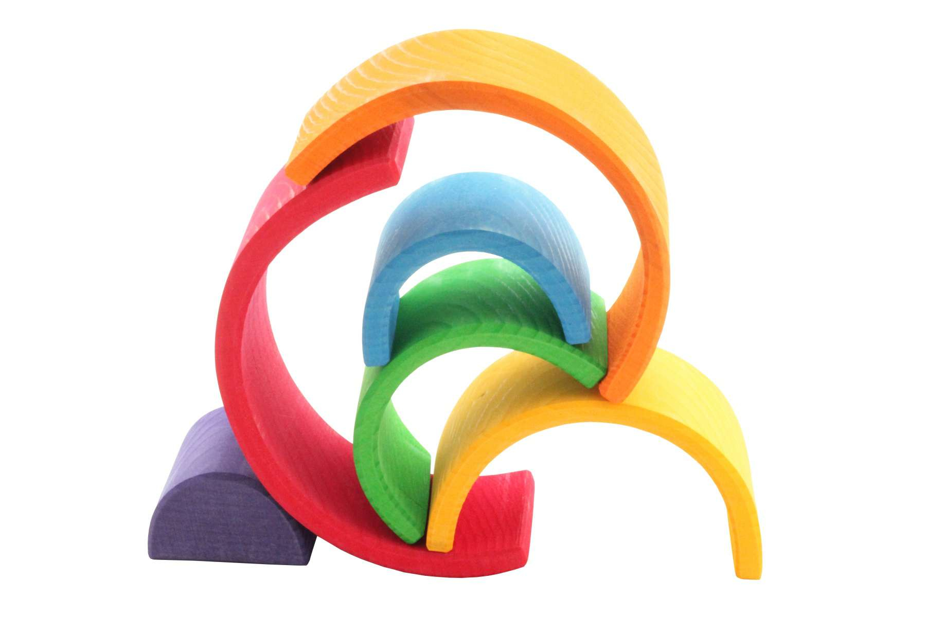 Un arc-en-ciel en bois Grimm's de 6 arcades.Celui-ci est tout simple mais permet de laisser libre court à l'imagination de l'enfant