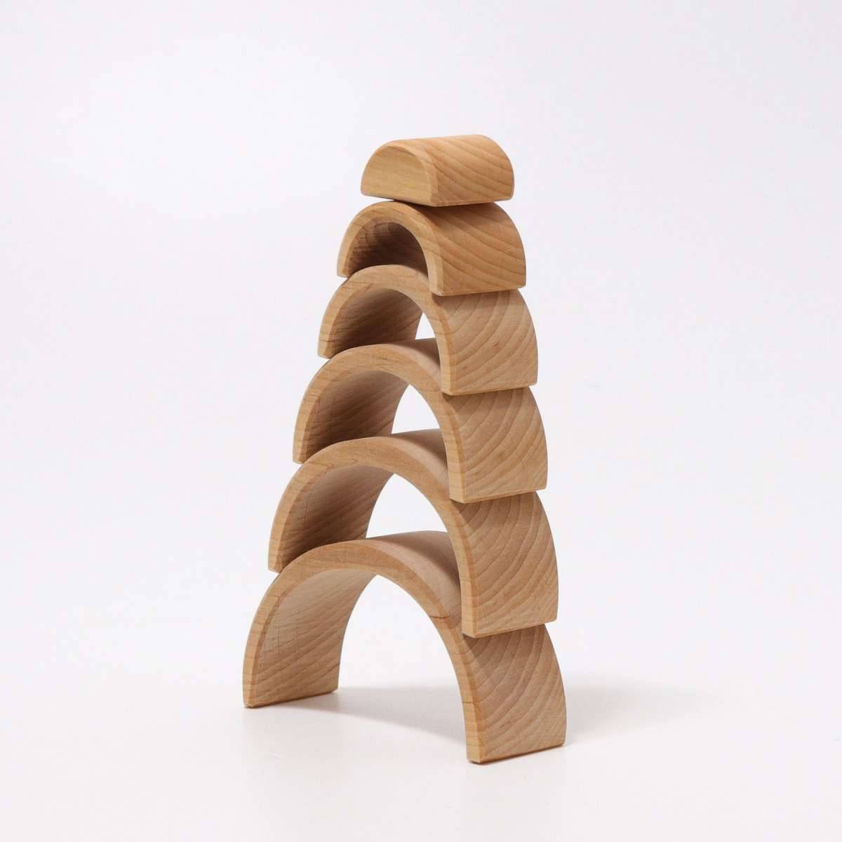 Un arc-en-ciel en bois Grimm's de 6 arcades.Celui-ci est tout simple mais permet de laisser libre court à l'imagination de l'enfant