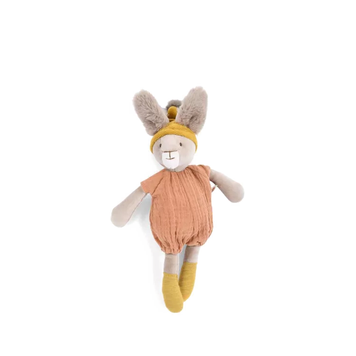 Découvrez la petite peluche Lapin argile de la collection Trois Petits Lapins de Moulin Roty, un compagnon doux et apaisant pour votre bébé.