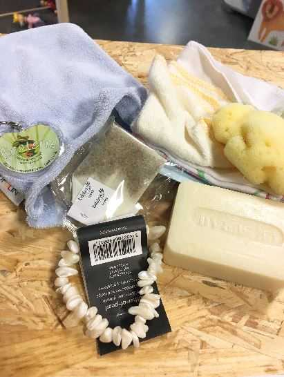 Une éponge, des lingettes lavables, un gant de toilette, un bijou pour maman, un savon et encore plus!