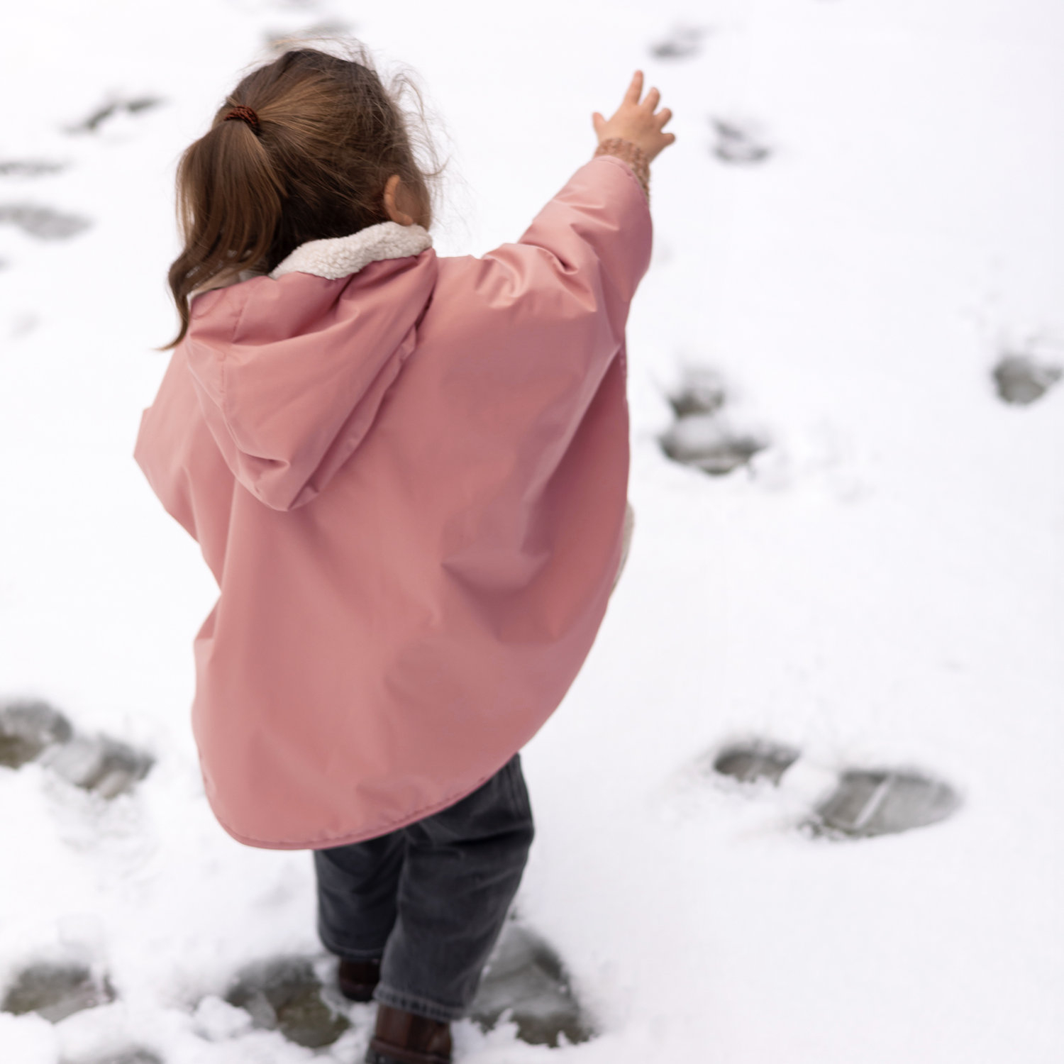 Le Poncho de voyage 9-36 mois Waterproof + Teddy Hibiscus de Bemini offre une protection imperméable, chaude et coupe-vent pour les déplacements de votre enfant, tout en assurant une sécurité optimale grâce à son design conforme aux recommandations routières.