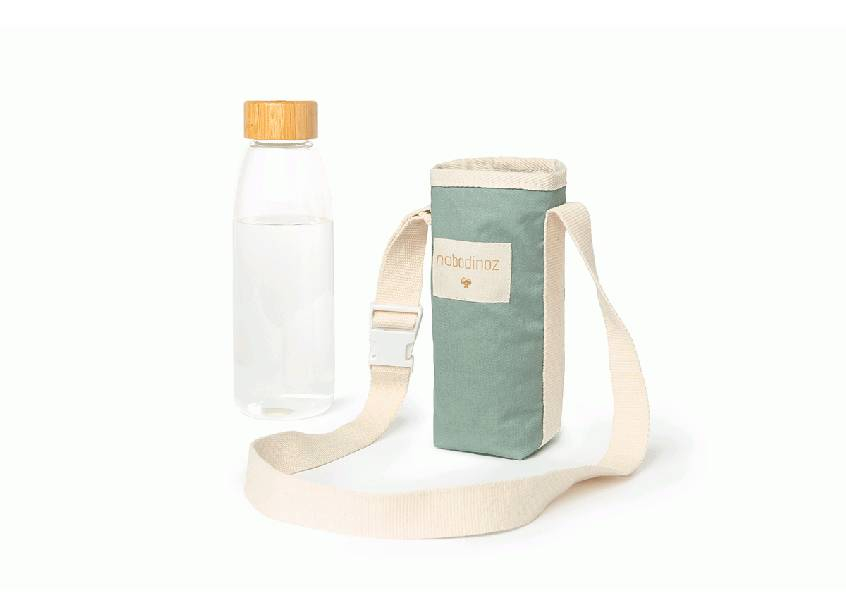 Transportez vos boissons avec style grâce au porte-bouteille Sunshine Eden Green de Nobodinoz, doté d'une bandoulière réglable et d'une doublure isotherme sans BPA.