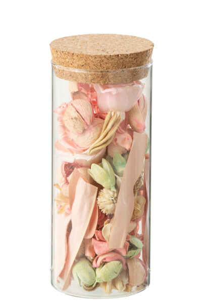 Pot Verre avec Fleurs Séchées +Pin Fuchsia Rose Jolipa