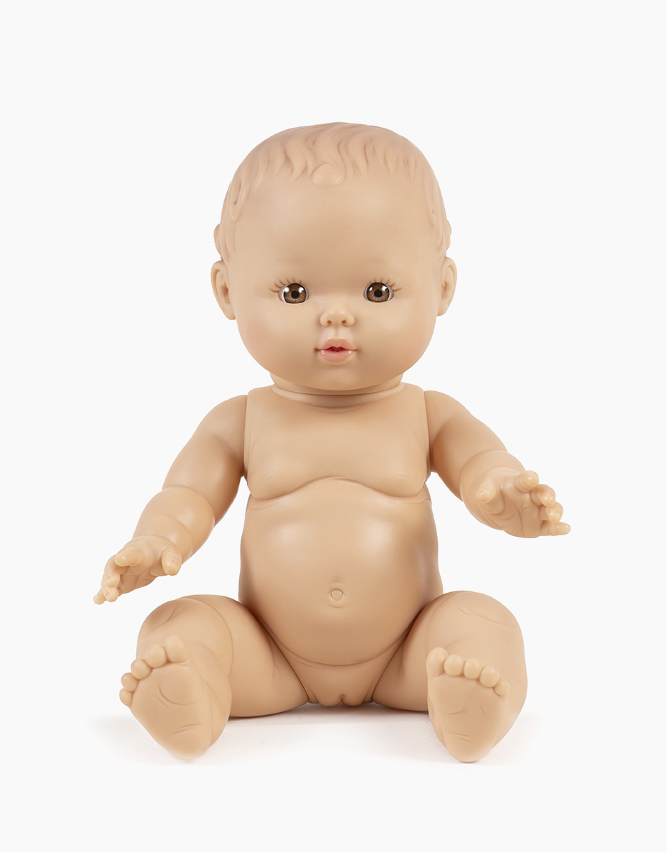 La Poupée Faustine de Minikane est une poupée de 34 cm en vinyle doux, parfumée à la vanille, avec des yeux marron/caramel et une peau claire. Compatible avec les vêtements Gordis, elle est idéale pour les enfants dès 10 mois.