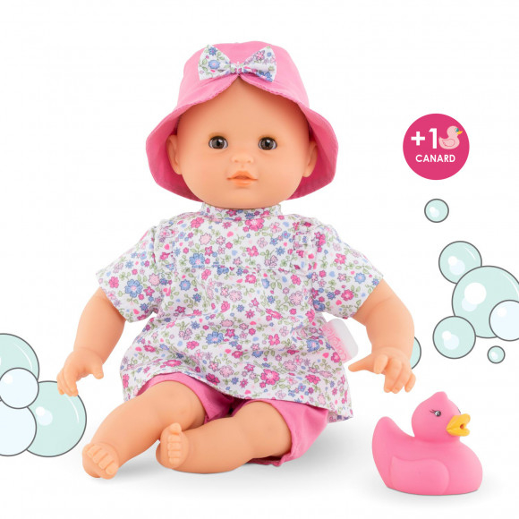 Le Poupon Bébé Bain Coralie de Corolle est un compagnon de baignade idéal pour les enfants dès 18 mois. Ce poupon de 30 cm, au corps souple et à la délicate senteur de vanille, est parfait pour les jeux d'eau dans le bain, à la piscine ou à la mer. Livré avec un canard de bain, il aide les enfants à se familiariser avec l'eau tout en s'amusant.