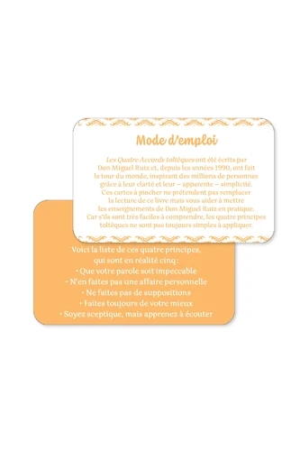 Une boîte de 40 cartes de conseils basés sur les quatre accords toltèques, pour cultiver la paix intérieure et le bien-être au quotidien.